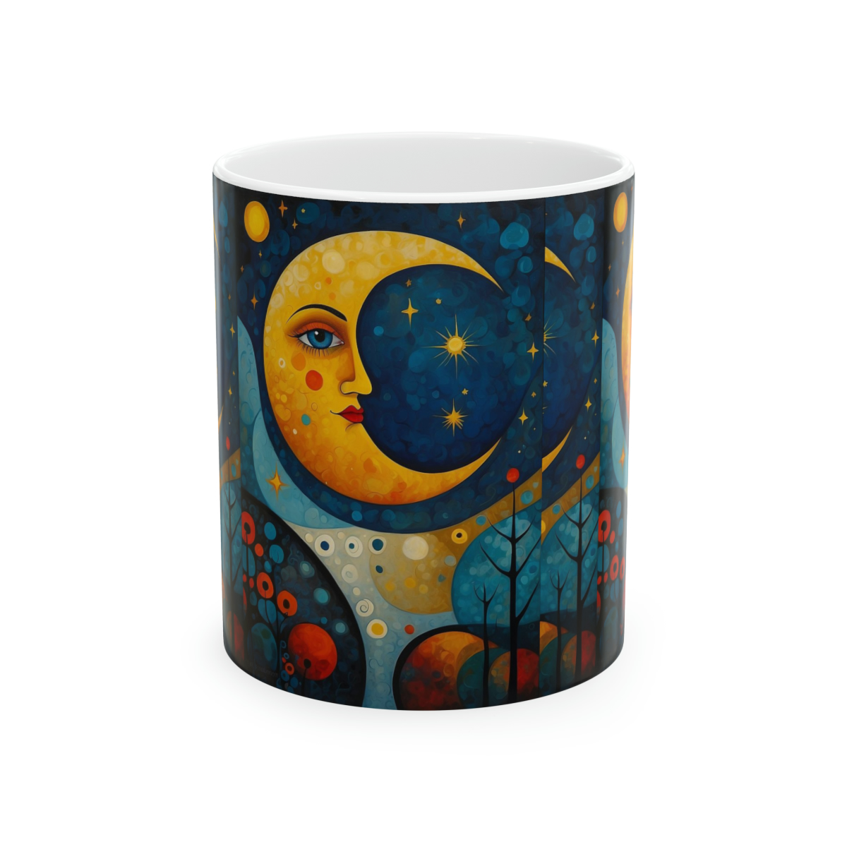 Introducing Free Shipping with our enchanting ceramic mug, adorned with a captivating abstract portrayal of the moon and stars overlooking a serene forest landscape. Crafted with meticulous attention to detail, this stunning mug features a half-phase moon, casting its gentle glow upon the lush expanse of the forest below. Each sip from this celestial-inspired mug is a moment of tranquility, as you immerse yourself in the dreamy ambiance of the night sky meeting the earthy embrace of the forest. Whether you’re savoring your morning coffee or winding down with a soothing cup of tea, our mug is sure to elevate your drinking experience. Bring a touch of cosmic wonder into your daily routine or gift it to someone special who appreciates the beauty of nature intertwined with the magic of the cosmos. Embrace the mystical allure of the moon and stars with this unique and exquisite mug, available exclusively on Etsy.