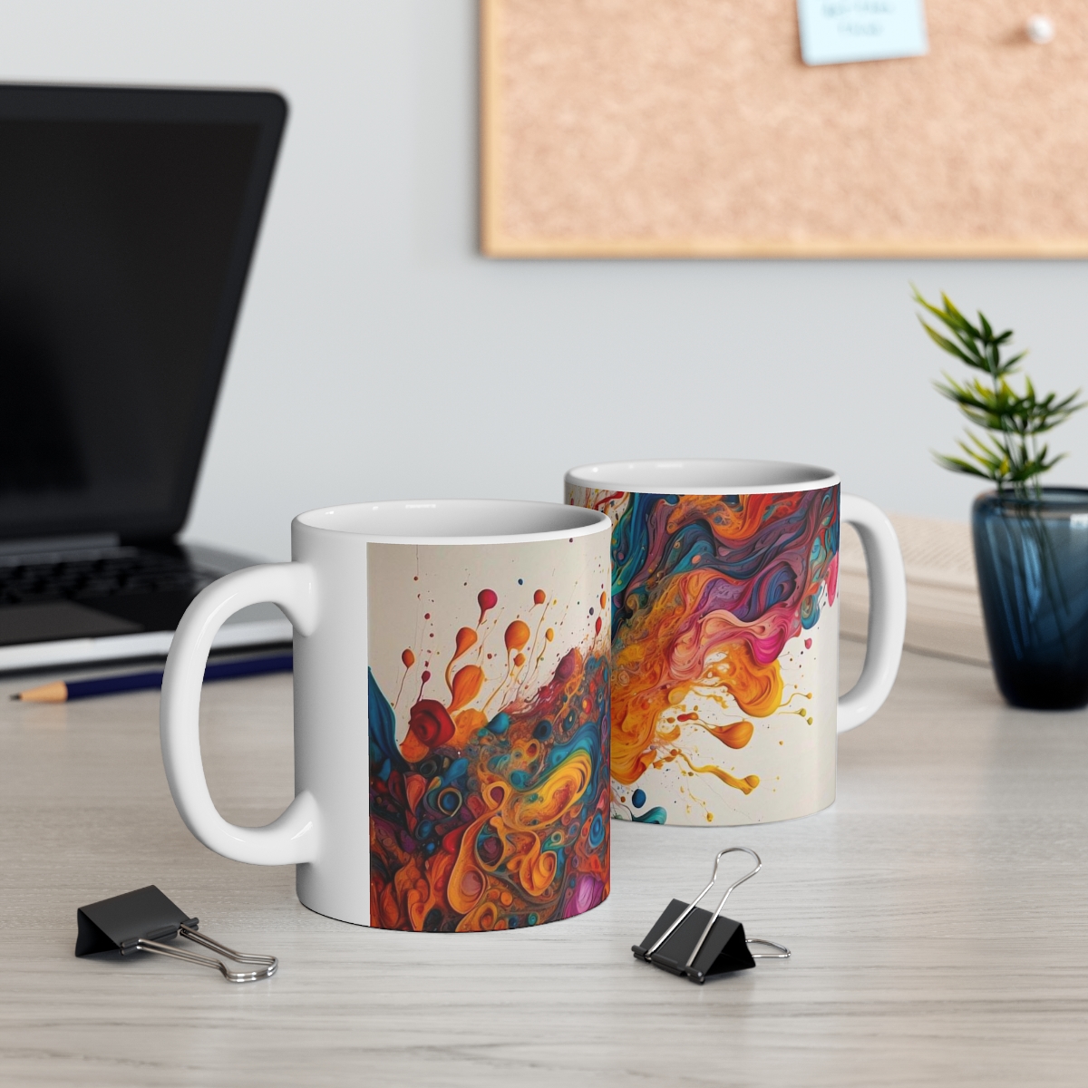 Welcome to another of our vibrant world of designer mugs. The Splash of Colors Mug where artistry meets functionality! One of our latest masterpiece – a stunning mug featuring an abstract splash of bright colors. This captivating mug is a true celebration of creativity, adding a touch of artistic flair to your daily coffee or tea ritual.